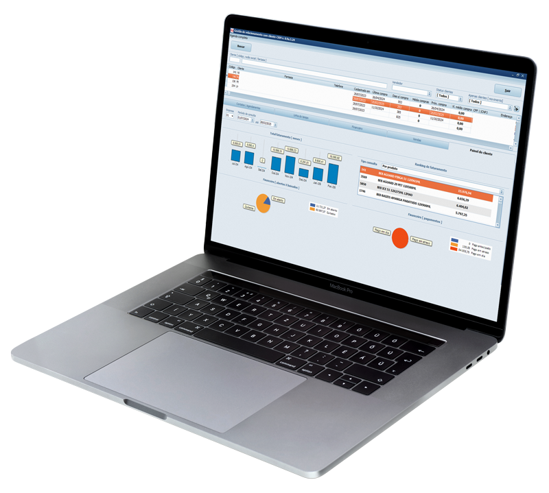 • Relatórios avançados de posição financeira da empresa por período de data.